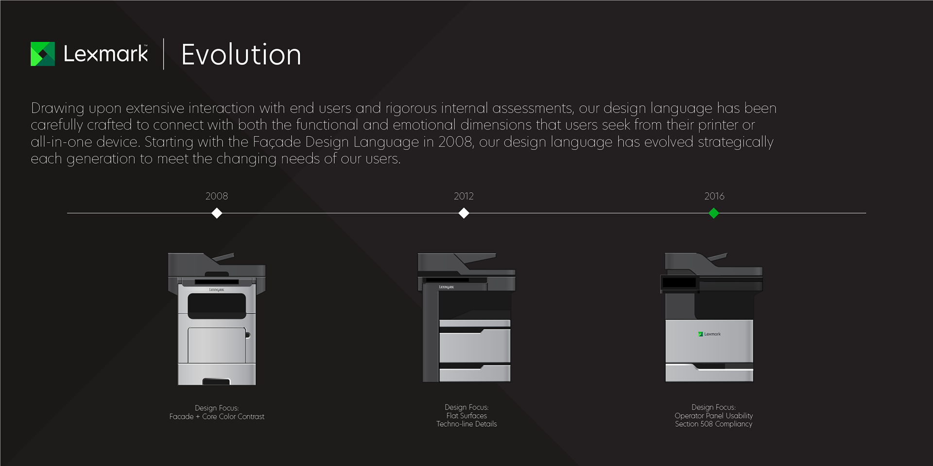 Development and documentation of industrial design language Additional credit: Lexmark design team